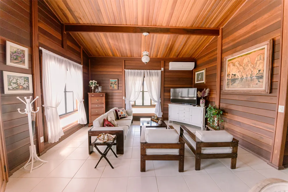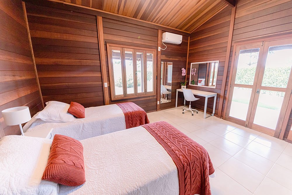 Seis chalés completos, integrados à natureza, pensados para acomodar amigos especiais com privacidade, tranquilidade e conforto.