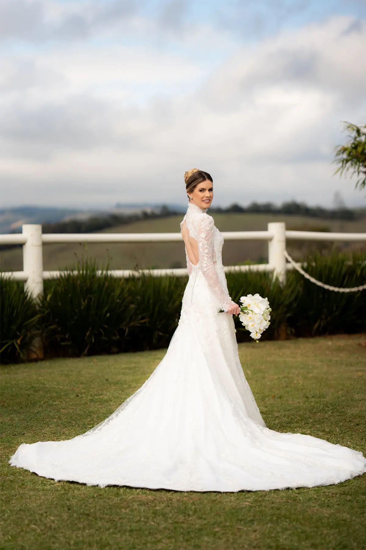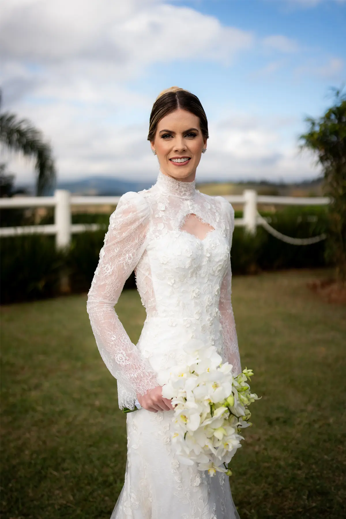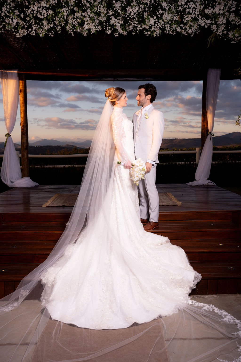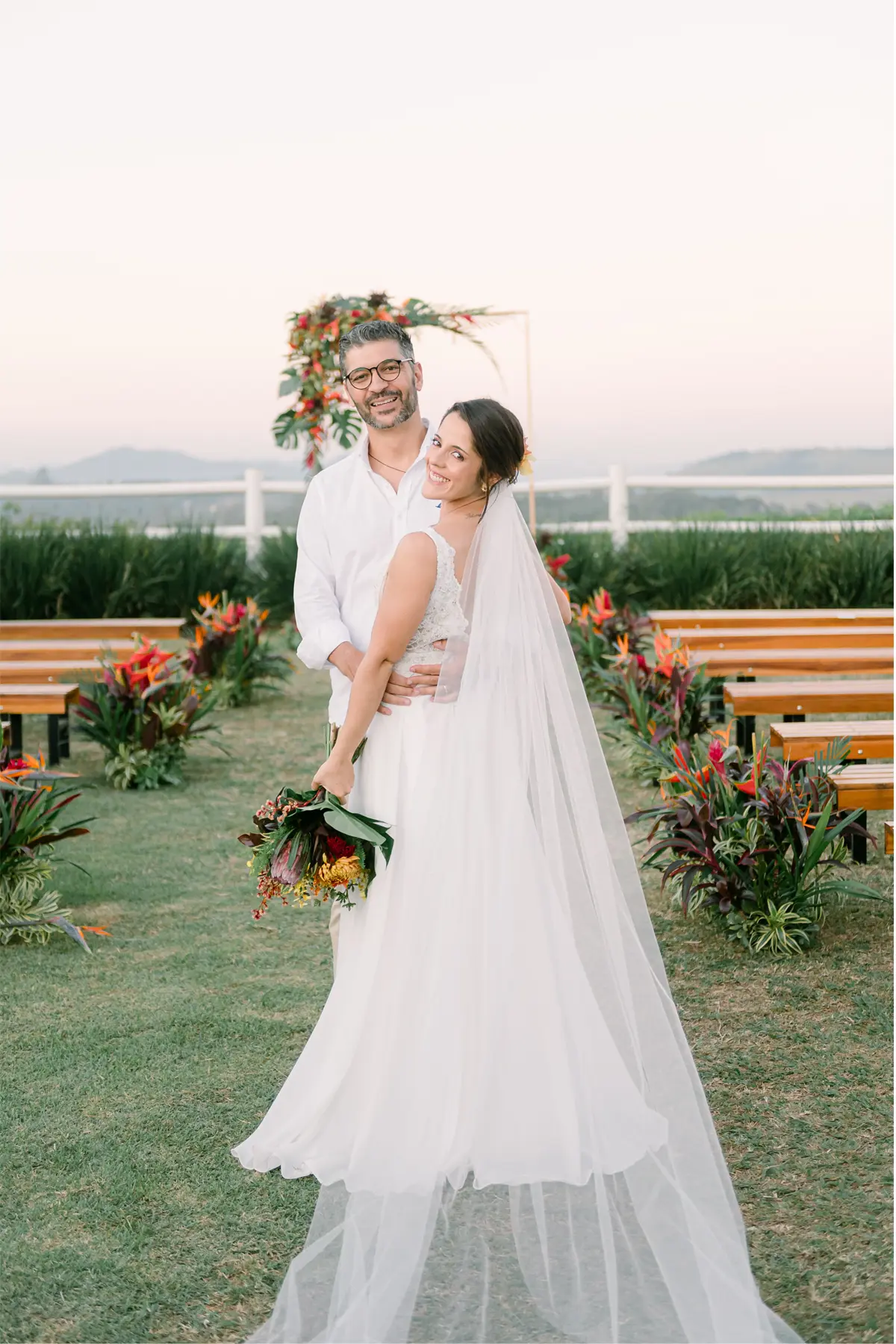 A vastidão da paisagem abraça o seu momento, tornando cada voto mais intenso. Você não precisa de excessos para emocionar — o cenário já diz tudo.